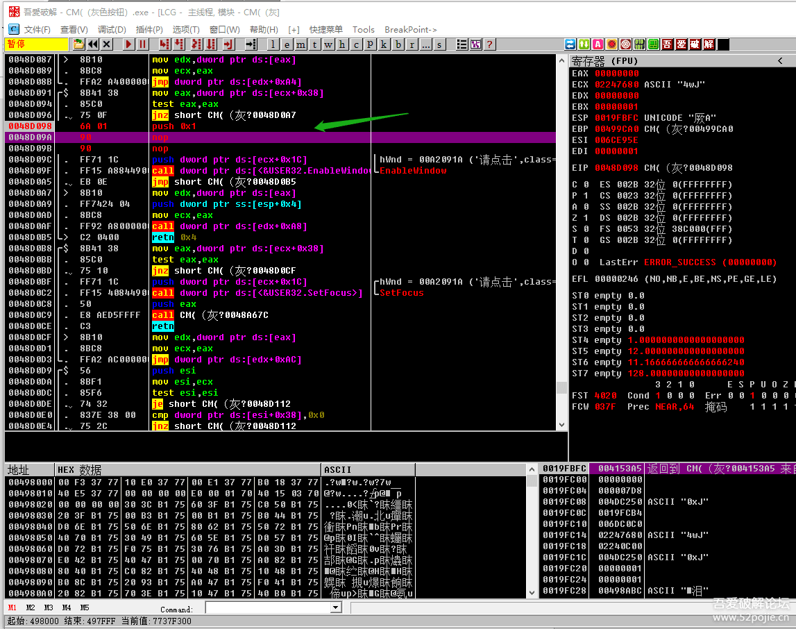 拿我们的这个CM(灰色按钮)为例,我们讲讲如何破解这一类型的软件。