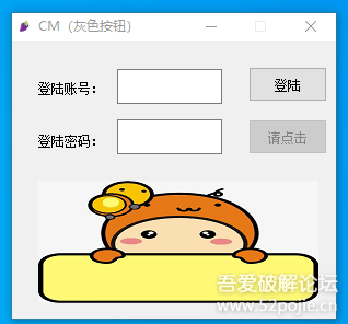 这是一个小软件的登陆界面,你会发现“请点击”按钮是处于“灰色”的显示状态,无法点击。